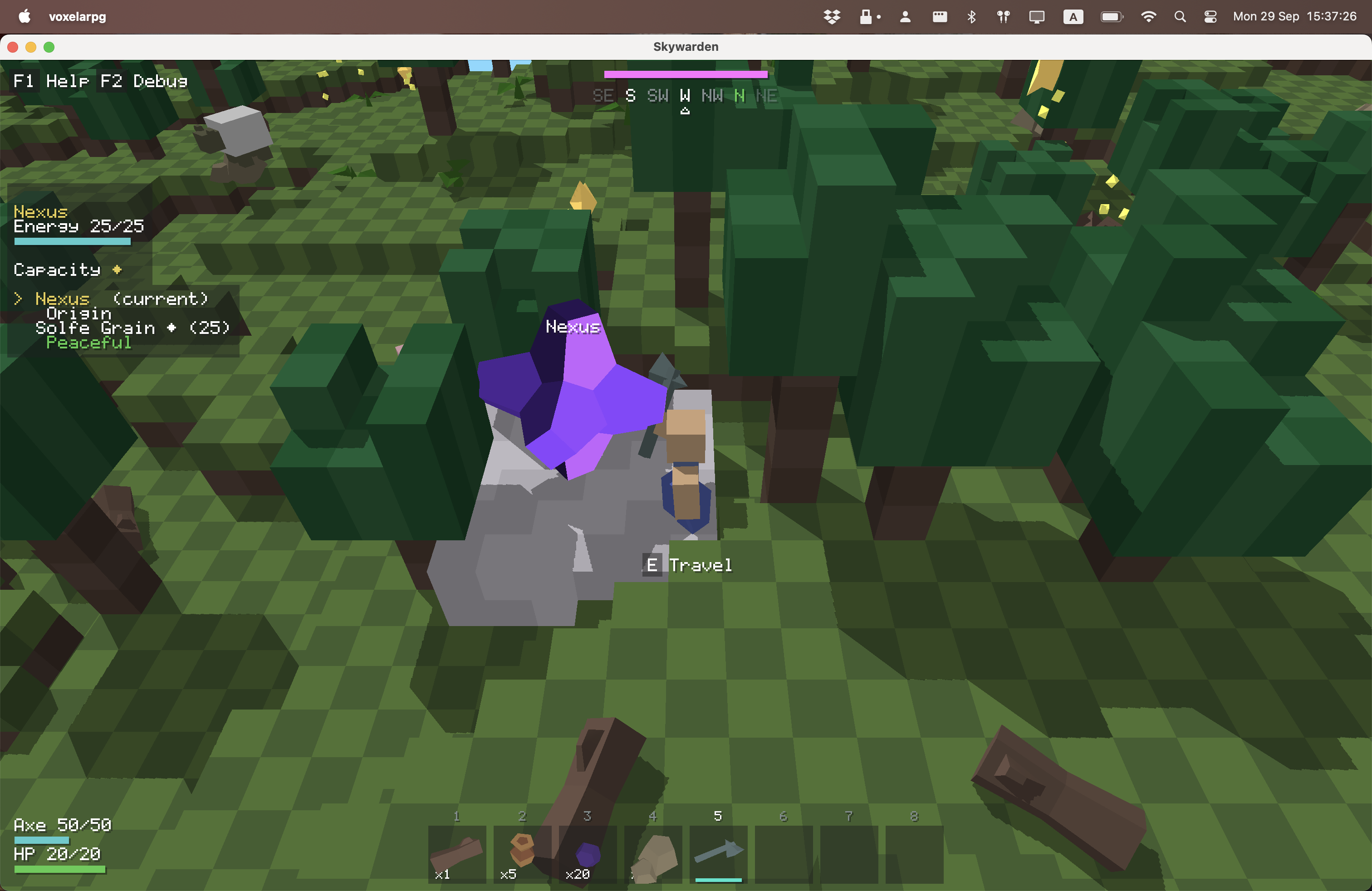 Skyward is a mishmash of Minecraft and Nethack. I decided to take the visual style and world of Minecraft, and mash it with the elegant simplicity of Nethack.